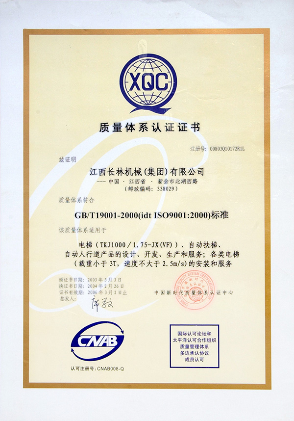 2003質(zhì)量體系認證證書