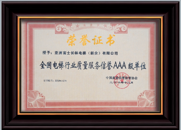 2006年全國電梯行業(yè)質(zhì)量服務(wù)信譽AAA級單位