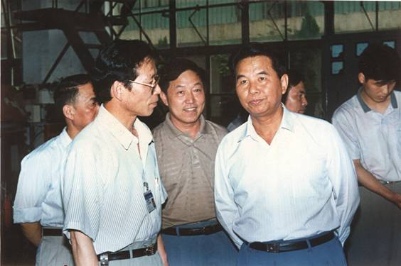 3、1996年6月省委書(shū)記吳官正在省委副秘書(shū)長(zhǎng)、辦公廳主任熊盛文、市委書(shū)記嚴(yán)顯烈、市長(zhǎng)丁耀民等陪同下來(lái)廠調(diào)研