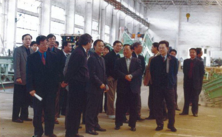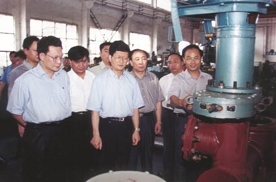 6、1999年10月18日,時(shí)任省長(zhǎng)舒圣佑(左3)在市長(zhǎng)曹二俚的陪同下來(lái)廠調(diào)研