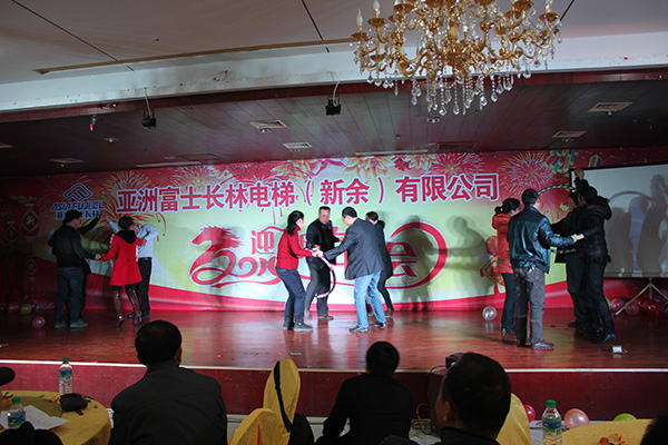 2014年1月24日下午,亞洲富士長林電梯公司年會在中山國際大酒店三樓演藝大廳隆重舉行,參加此次年會的有公司領導和全體員工、新余地區的主要供應商代表。為保障年會的順利召開,公司工會進行了精心的準備,提前一個月通知各部門準備表演的節目,工會委員認真策劃年會流程、準備游戲節目和道具、備好豐富的獎品。