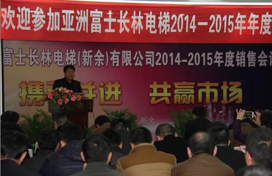 隨后,銷售總監佟德賢先生與各位參會人員分享了2014年亞洲富士長林電梯所取得的驕人成績。就2014年銷售工作總結暨2015年銷售工作規劃做了詳細的 主題報告,他說:針對2014年銷售工作各方面數據來看,我們在過去的一年里取得了不斐的業績和顯著的進步,在座諸位經理都是公司了不起的銷售精英,在此代表公司表示感謝。但是總結之后,我們也會發現存在不足的地方,因為各方面資源沒有達到最好優化配置,造成個別區域增長速度較低的情況。因此,公司在2015年將繼續加強銷售網絡建設和銷售員素質的提高等工作。綜合市場各方面因素來展望2015,不論是從國家大的政策來看、還是從行業內競爭整合態勢來看,它將是我們發展提升至關重要的一年。公司有信心、有決心繼續夯實內部平臺,為我們的銷售人員提供一個更好的發展空間。