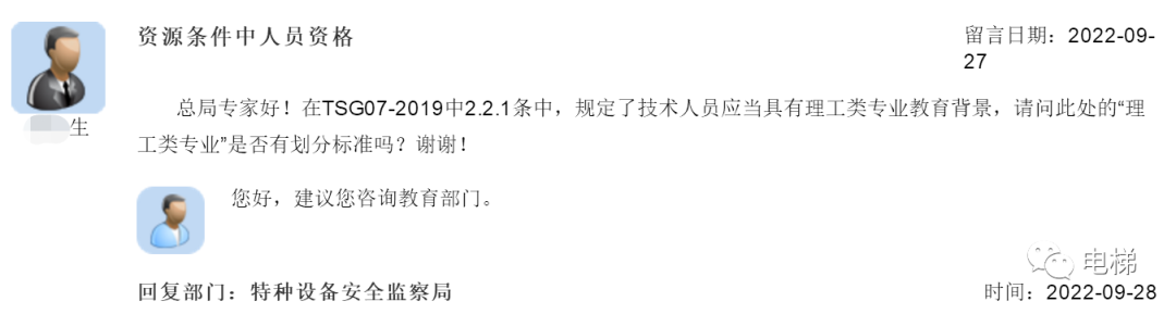問:資源條件中人員資格 總局專家好!在TSG07-2019中2.2.1條中,規(guī)定了技術(shù)人員應當具有理工類專業(yè)教育背景,請問此處的“理工類專業(yè)”是否有劃分標準嗎?謝謝! 總局回復:您好,建議您咨詢教育部門。