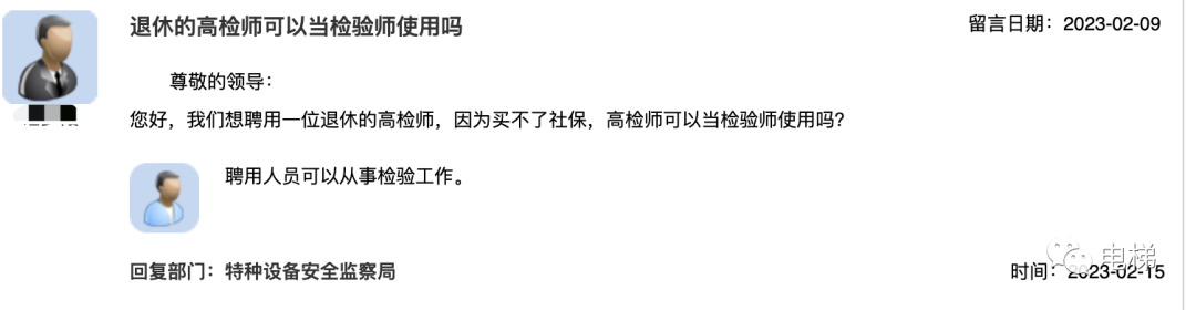 退休的高檢師可以當電梯檢驗師使用嗎?總局回復!(第六十)